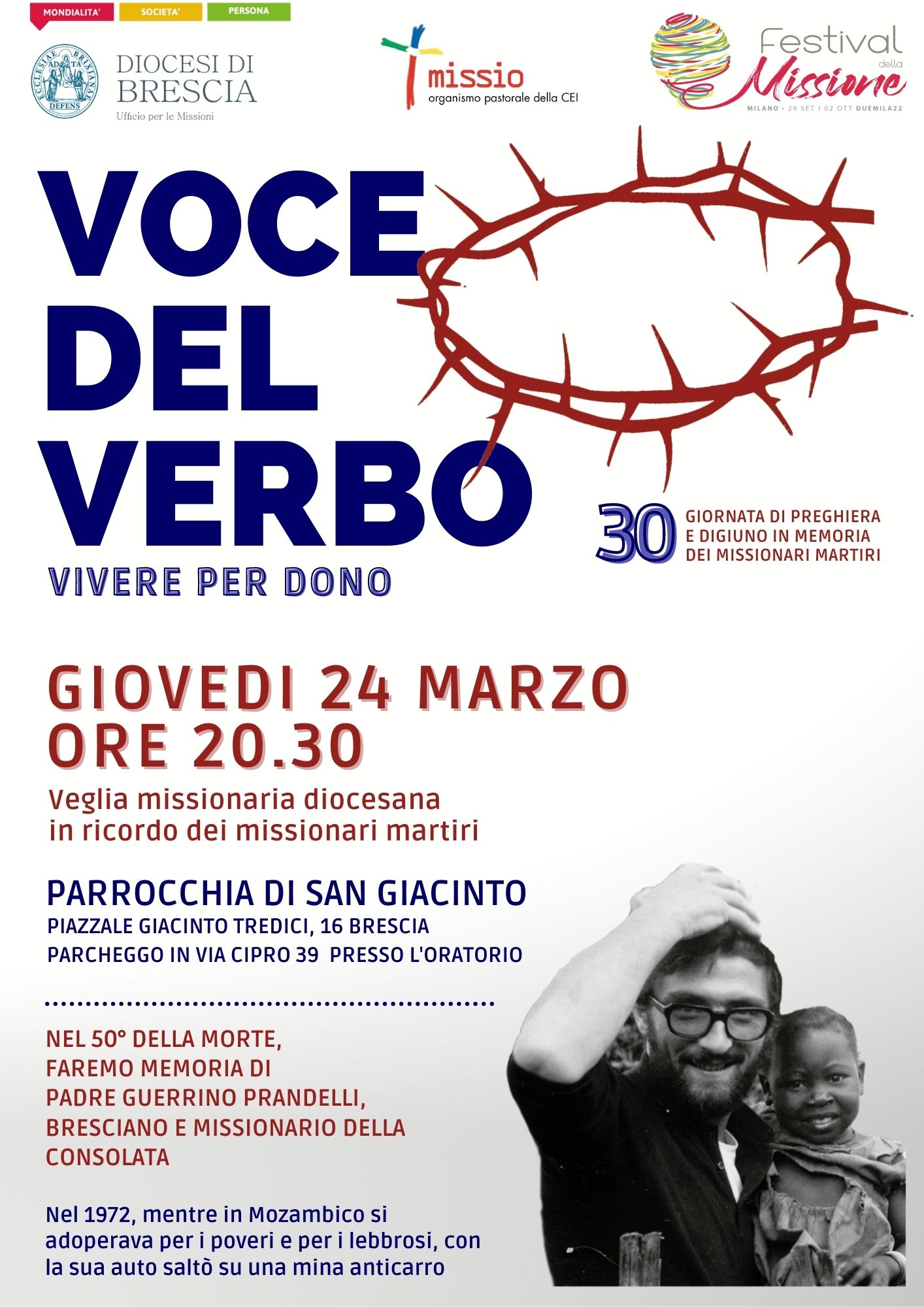 Quest’anno, nel 50° anniversario della sua morte, ricorderemo la figura del missionario bresciano P. Guerrino Prandelli.