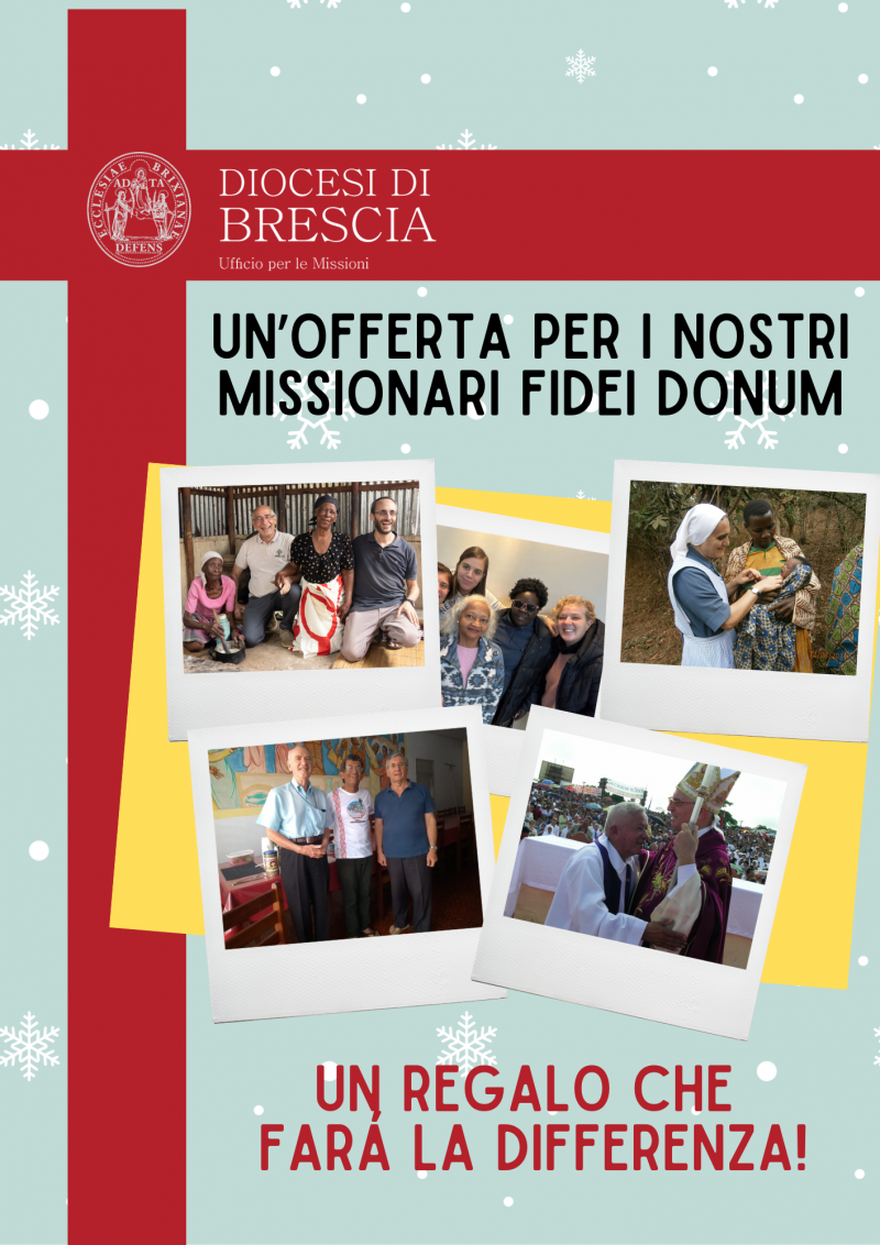 Oppure utilizzando il conto corrente postale n° 389254 intestato a “Diocesi di Brescia, via Trieste 13, 25121 Brescia”; causale: offerta per le missioni.
