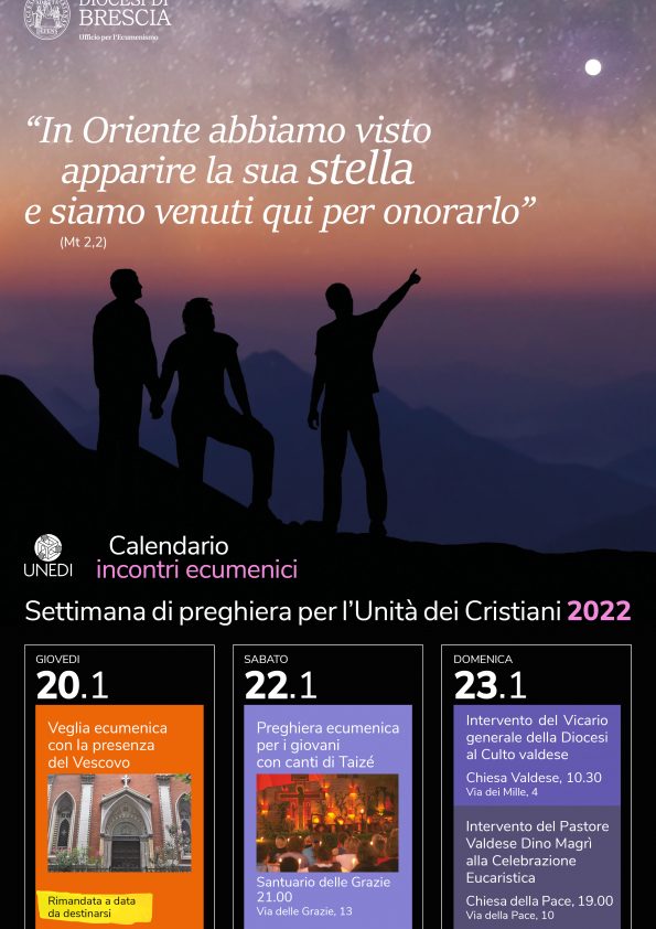 Come ricorda Papa Francesco nell’Evangelii Gaudium: “l’impegno ecumenico risponde alla preghiera del Signore Gesù che chiede che «tutti siano una sola cosa» (Gv 17,21). La credibilità dell’annuncio cristiano sarebbe molto più grande se i cristiani superassero le loro divisioni e la Chiesa realizzasse «la pienezza della cattolicità a lei propria in quei figli che le sono certo uniti col battesimo, ma sono separati dalla sua piena comunione (EG 244). L’Ufficio per l’Ecumenismo, in collaborazione con tutti gli altri uffici di pastorale, si sforza di realizzare occasioni di incontro, formazione e preghiera affinché possiamo realizzare nel nostro territorio quella fraternità che nasce tra tutti coloro che si riconoscono nella Scrittura e nel Signore Gesù.