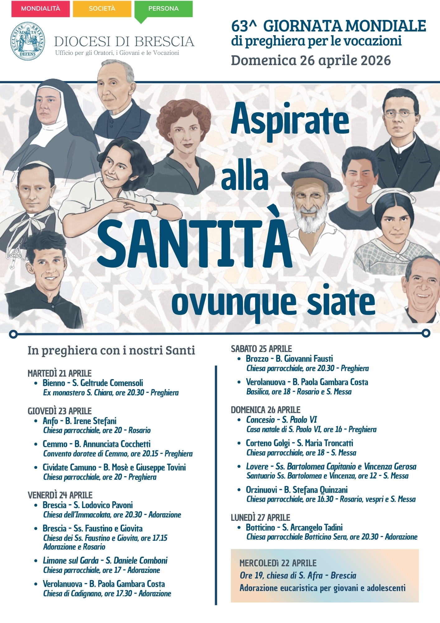 63^ Giornata Mondiale di Preghiera per le Vocazioni – “Aspirate alla santità, ovunque siate”