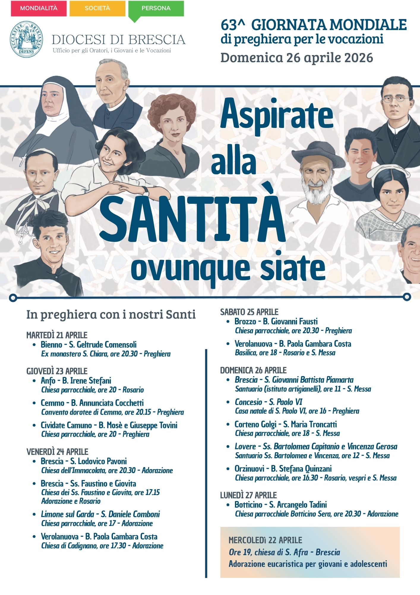 63^ Giornata Mondiale di Preghiera per le Vocazioni – “Aspirate alla santità, ovunque siate”