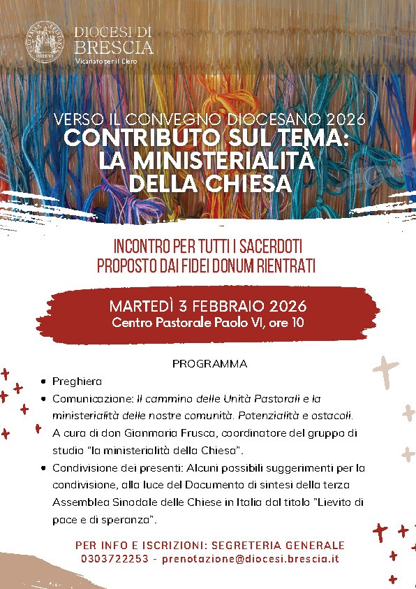 Martedì 9 e mercoledì 10 settembre 2025 al Polo Culturale Diocesano si terrà il Convegno del Clero sul tema “Quale presbitero per la Chiesa di oggi e di domani?“.