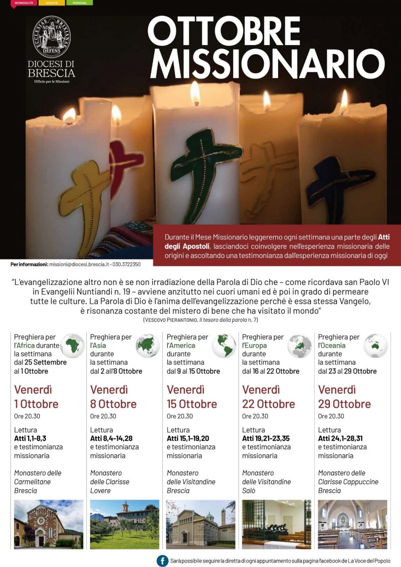 Veglia Missionaria Diocesana presieduta dal Vescovo Pierantonio Tremolada, con la partecipazione di istituti missionari, religiosi, religiose, gruppi parrocchiali e giovani che hanno vissuto esperienze estive di missione nei Paesi del Sud del mondo.