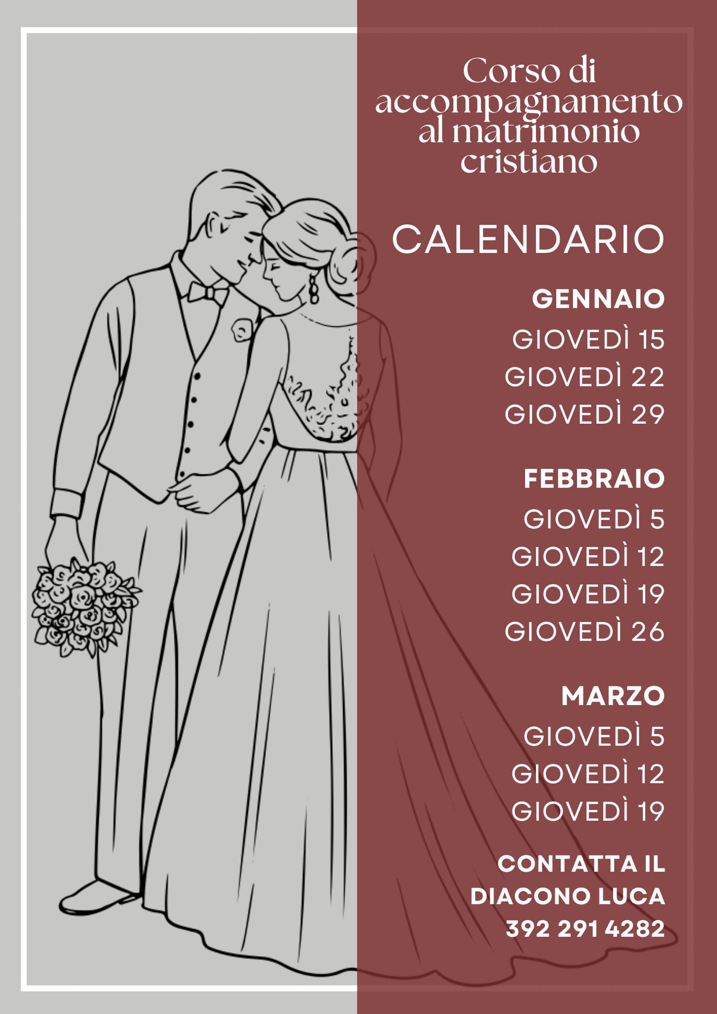 4-Giovedì01-Gennaio, 02-Febbraio, 03-MarzoZONA 10 - Verolanuova e Bassa Centrale Ovest 4 Dicembre 2025 Verolanuova e Zona 10 Periodo: Gennaio – Marzo 2026 Giorni e date degli incontri: il giovedì dal 15 gennaio al 19 marzo Orario degli incontri: dalle ore 20.30 Sede degli incontri: Oratorio Verolanuova Info e iscrizioni: diacono Luca (392 2914287)