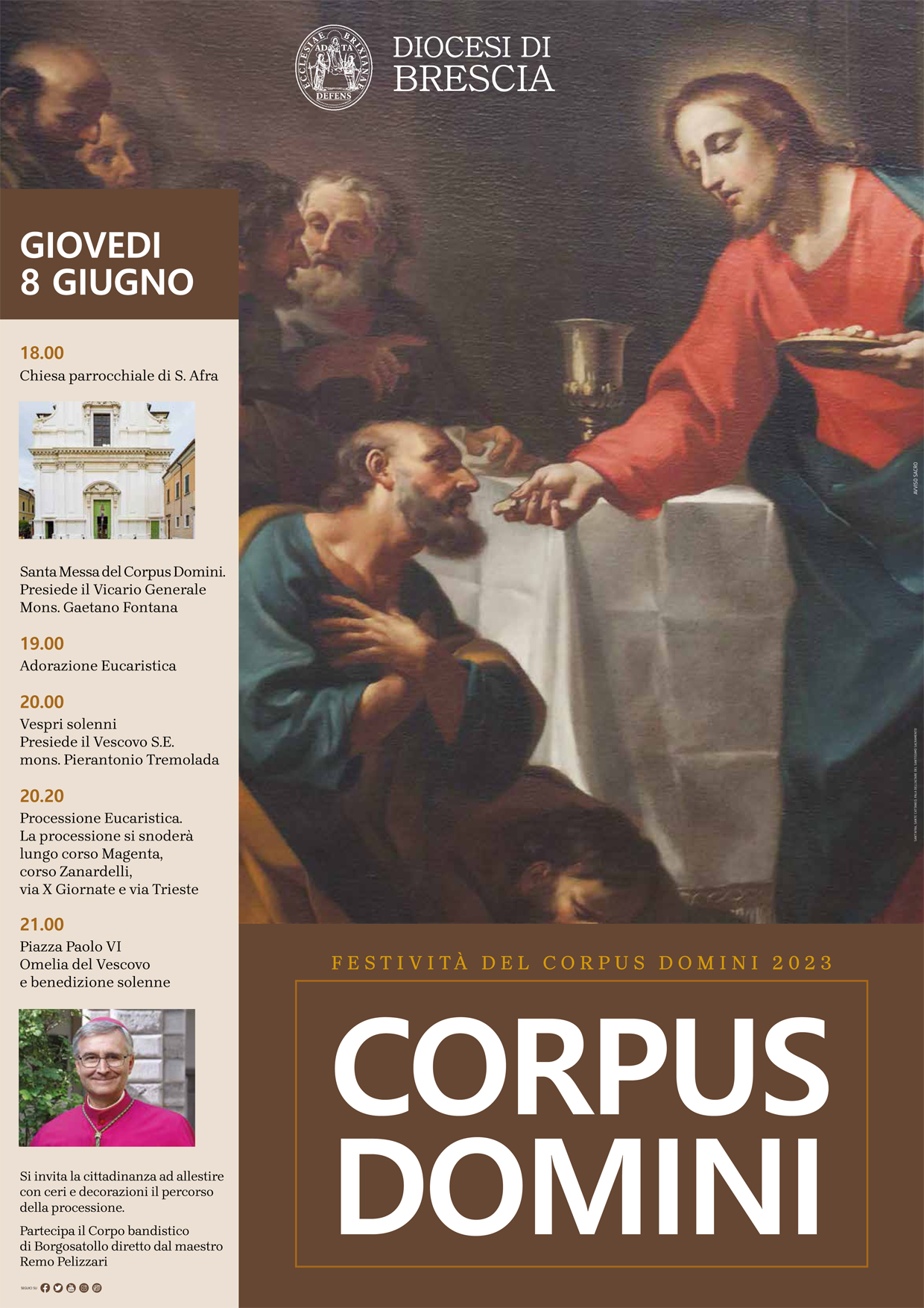 Si invita la cittadinanza ad allestire con ceri e decorazioni il percorso della processione. Partecipa il Corpo bandistico di Borgosatollo diretto dal maestro Remo Pelizzari.