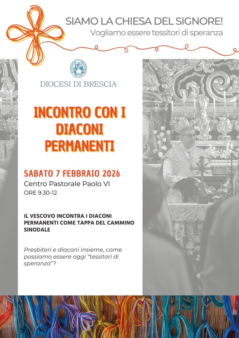L’incontro si terrà sabato 7 febbraio al Centro Pastorale Paolo VI dalle ore 9.30 alle 12, sul tema: Presbiteri e diaconi insieme, come possiamo essere oggi “tessitori di speranza”?