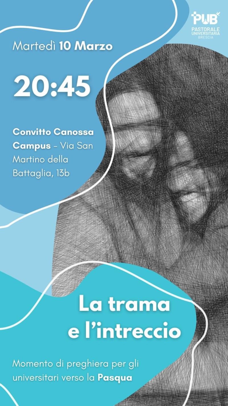 Martedì 10 marzo, nel Convitto universitario Canossa Campus (via S. Martino della Battaglia, 13b) alle ore 20:45 è proposta, a cura del Servizio per l’Università, una serata di preghiera fra studenti universitari, in preparazione alla Pasqua.