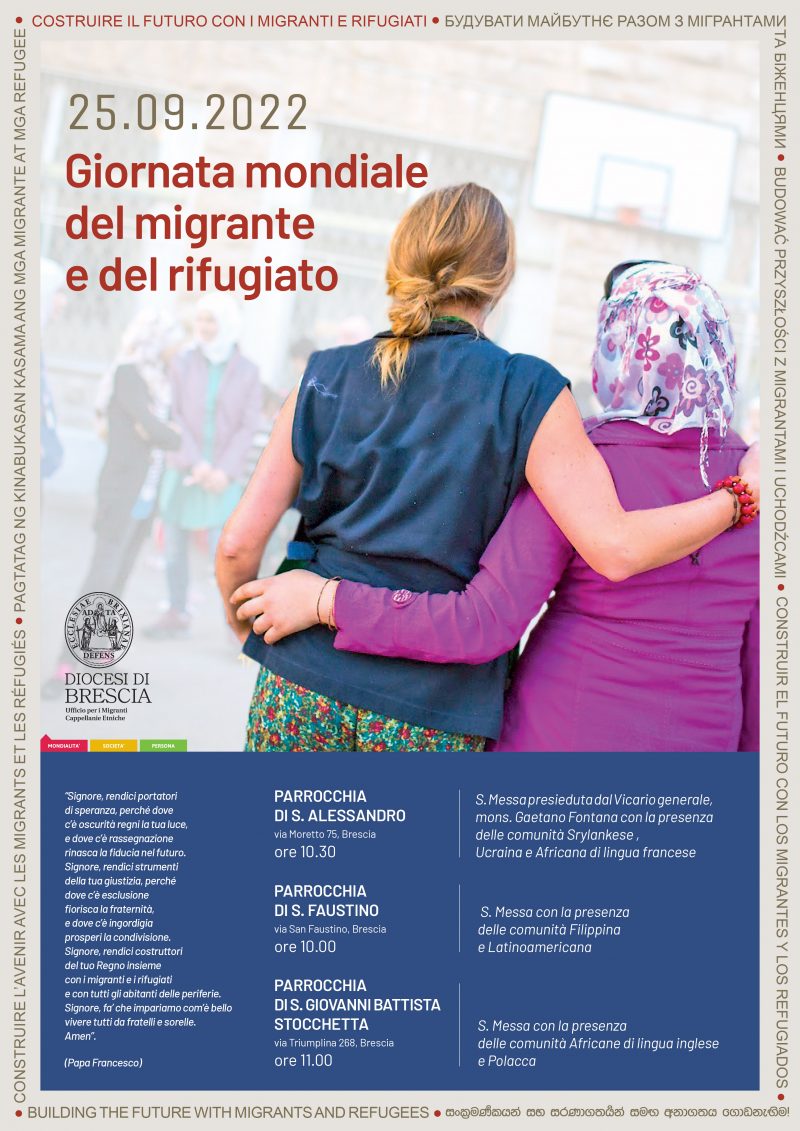 Il 25 settembre 2022 la Chiesa celebra la 108^ Giornata Mondiale del Migrante e del Rifugiato. Per tale ricorrenza il papa ha scelto come titolo del suo messaggio e della Giornata stessa “Costruire il futuro con i migranti e i rifugiati”. Poche parole che delineano un programma pastorale preciso. Anzitutto “costruire”: una società fraterna non può solo essere auspicata ma potrà realizzarsi grazie all’impegno e al lavoro delle nostre comunità. Il “futuro” poi lancia uno sguardo di fiducia, di prospettiva, di speranza. Infine è fondamentale l’intenzione di voler essere Chiesa “con” i migranti: non solo destinatari di iniziative, non solo oggetto della nostra carità ma protagonisti con il loro prezioso contributo, con la propria capacità di arricchire la vita comunitaria ed ecclesiale