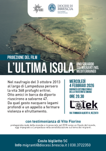 Sempre mercoledì 4 febbraio 2026, dalle ore 10.00 alle 12.45, presso il Cinema Nuovo Eden di Brescia, è prevista una proiezione gratuita del documentario L’ultima isola (2024), rivolta specificamente alle scuole.