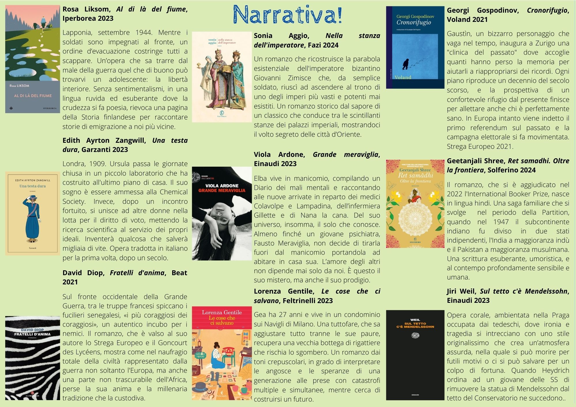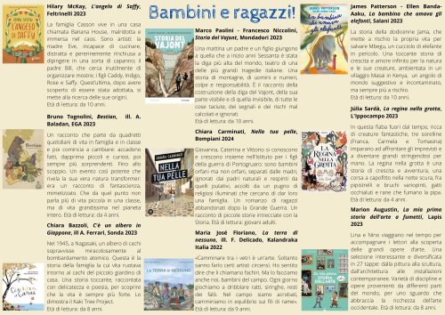 Biblioteca Diocesana 4 Aprile 2024 Newsletter 10 – marzo 2024 Newsletter 10 - 1 La biblioteca invia ai suoi lettori una newsletter, a cadenza trimestrale, che propone 57 titoli – con abstract – scelti fra le nuove acquisizioni. Sono presenti ogni volta precise sezioni dedicate alle opere di saggistica, alla narrativa, ai libri per bambini e ragazzi e ai film in DVD. Newsletter 10 - marzo 2024