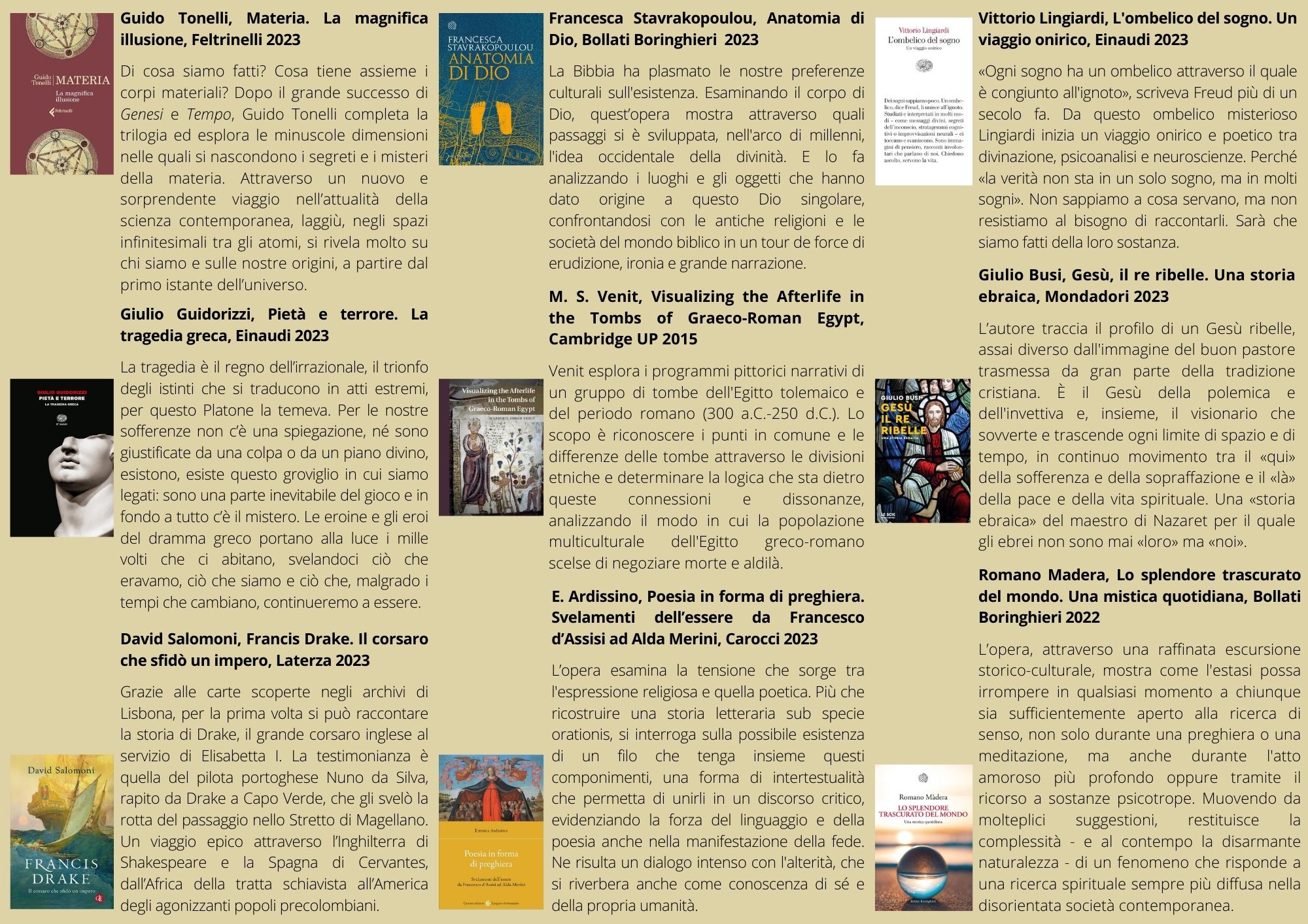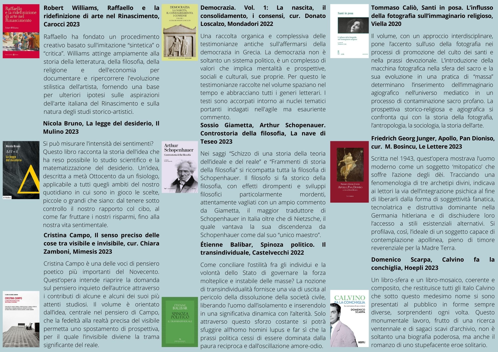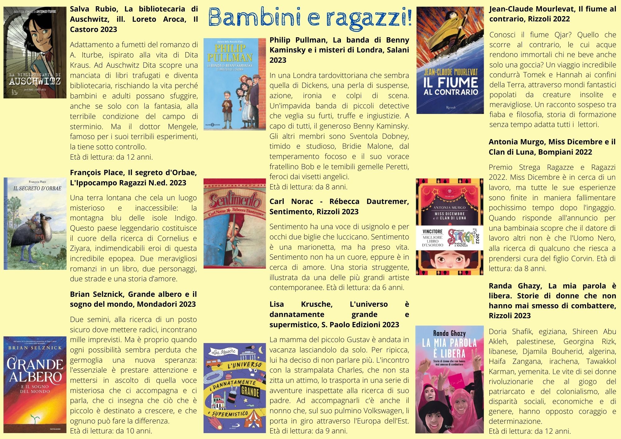 La biblioteca invia ai suoi lettori una newsletter, a cadenza trimestrale, che propone 57 titoli – con abstract – scelti fra le nuove acquisizioni. Sono presenti ogni volta precise sezioni dedicate alle opere di saggistica, alla narrativa, ai libri per bambini e ragazzi e ai film in DVD.