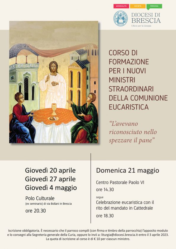 - 21 maggio 2023 presso il Centro pastorale Paolo VI dalle ore 14.30 alle ore 18.30 con la Celebrazione eucaristica con il rito del mandato in Cattedrale a Brescia.