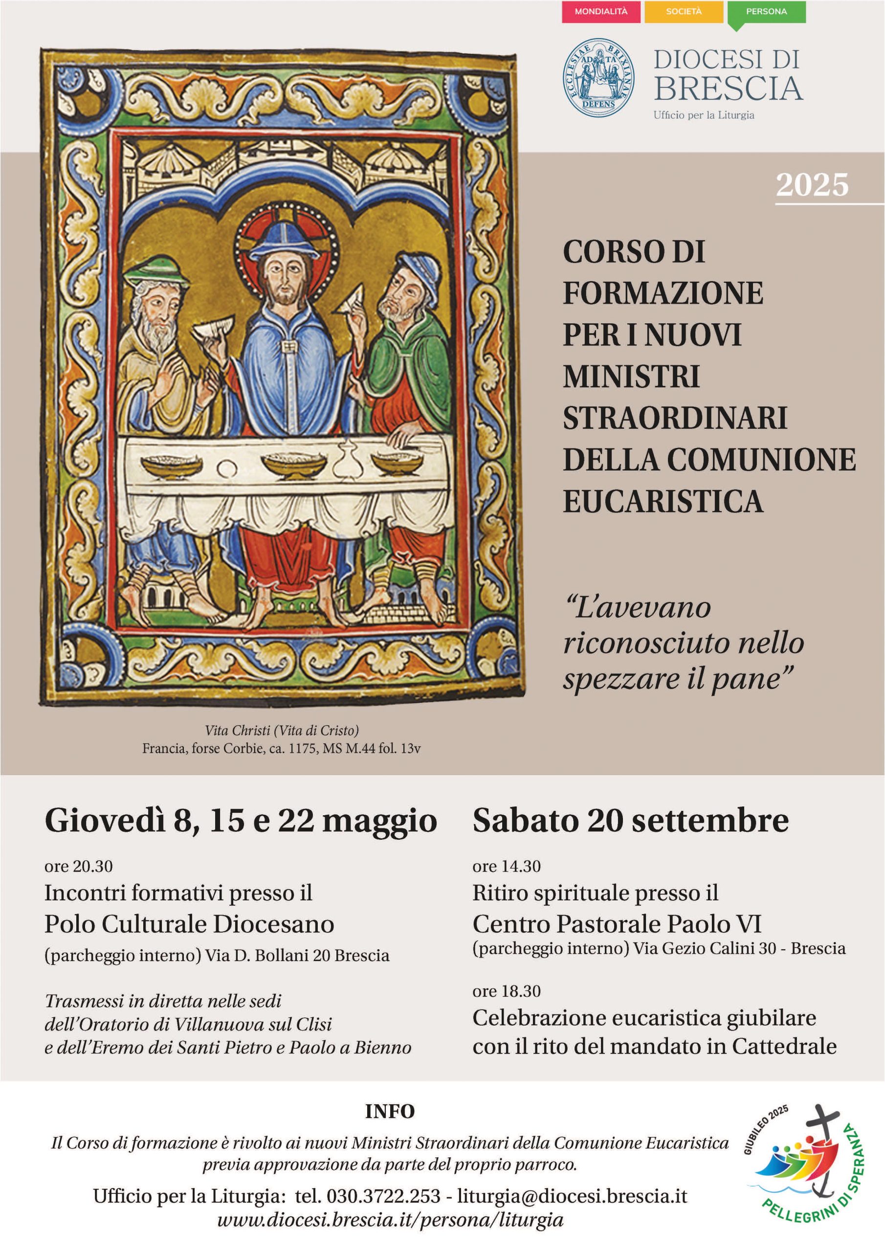 L’appuntamento è al Centro Pastorale Paolo VI (parcheggio interno – no ZTL) alle ore 14.30 per un tempo di formazione e lettura spirituale condivisa. Seguirà una visita artistico-culturale e, alle 18.30, la Celebrazione eucaristica con il rito del mandato in Cattedrale.