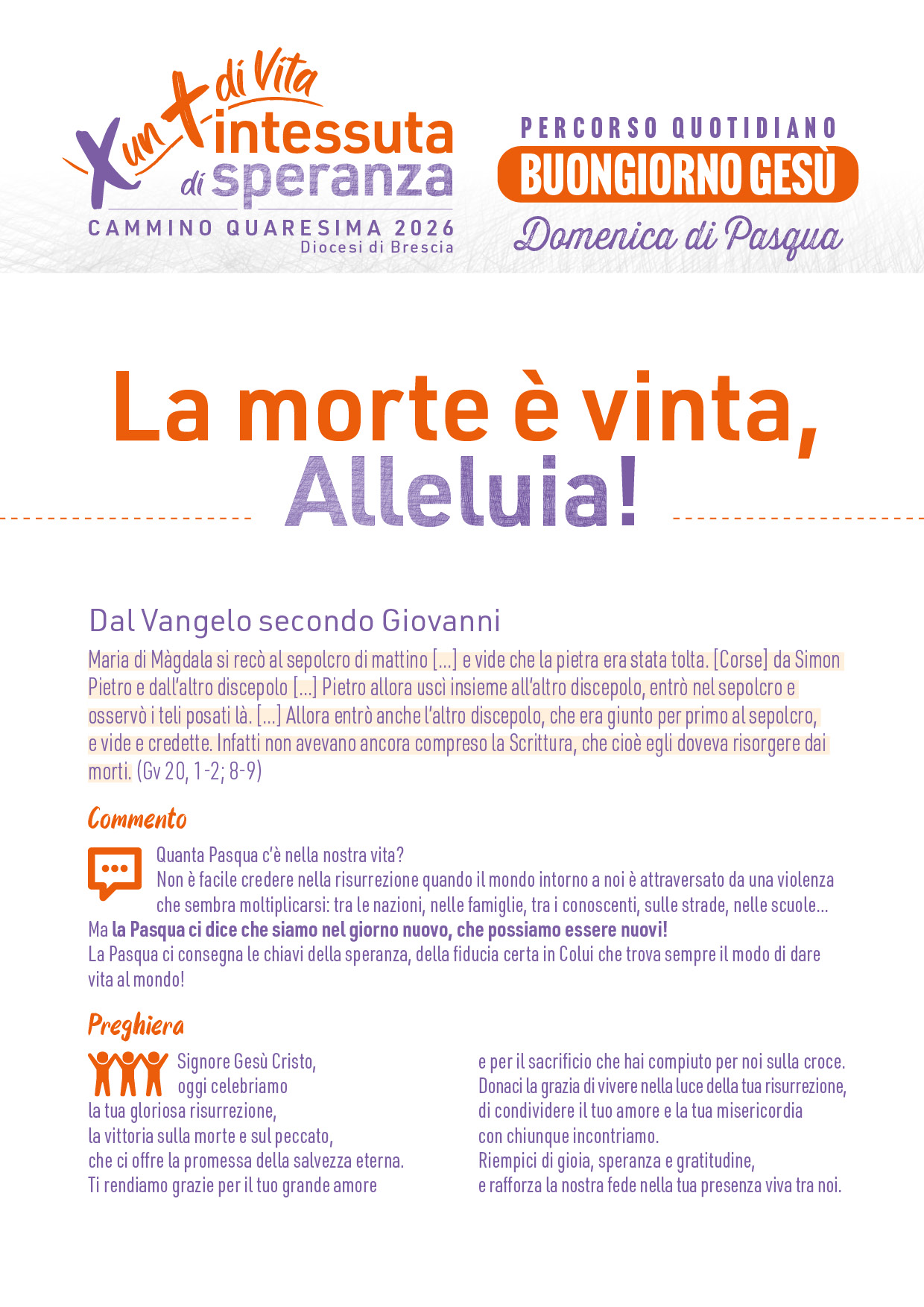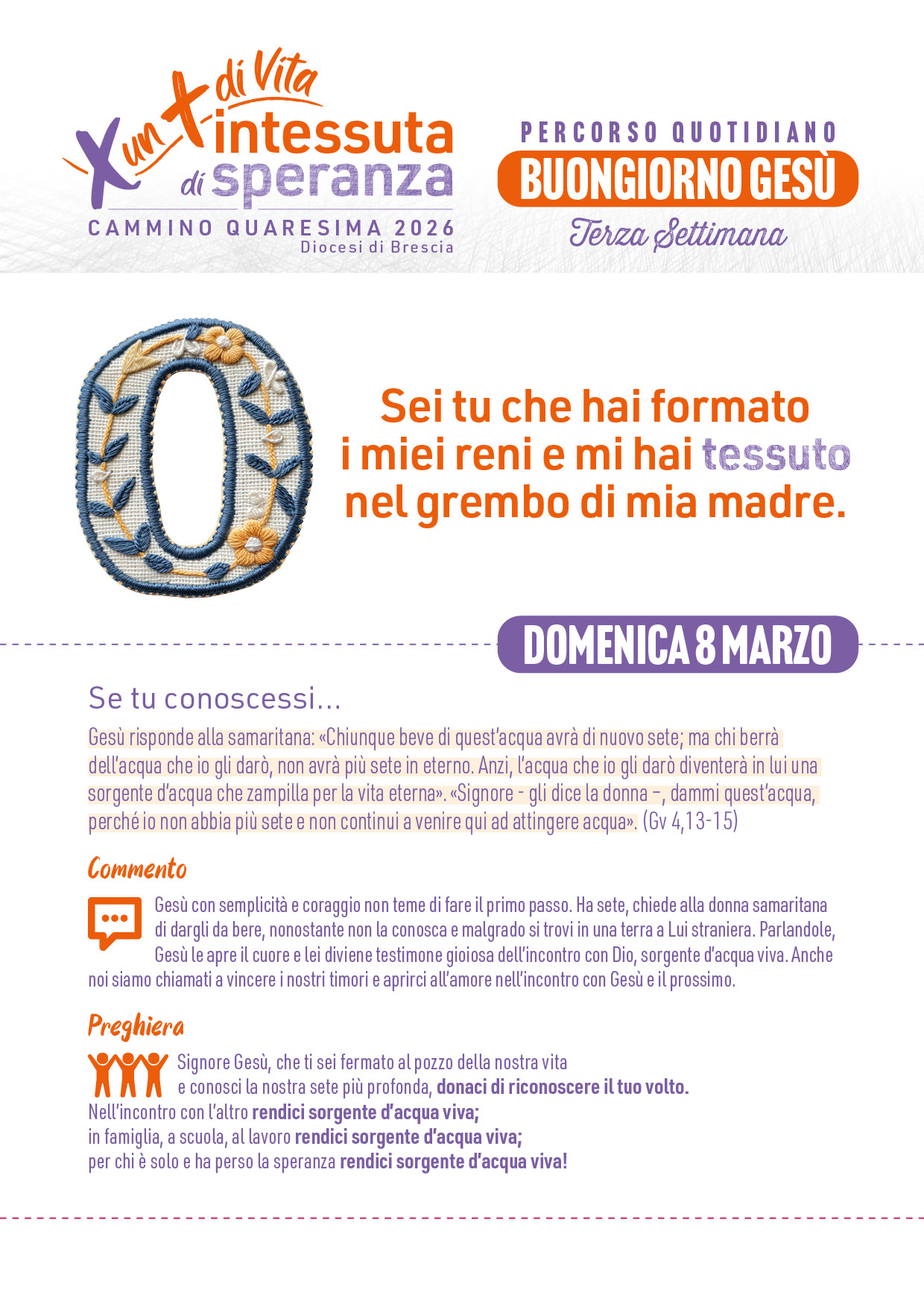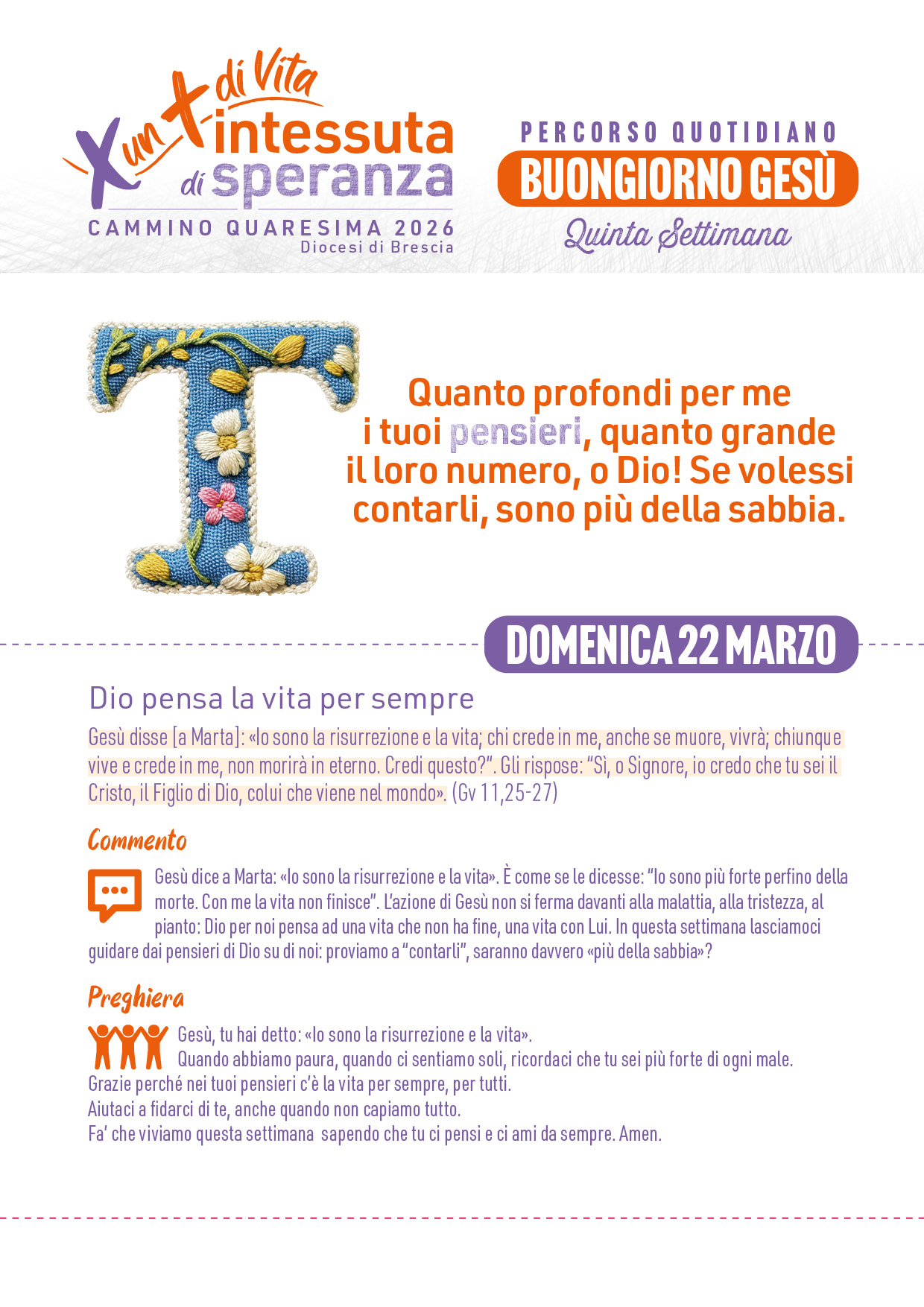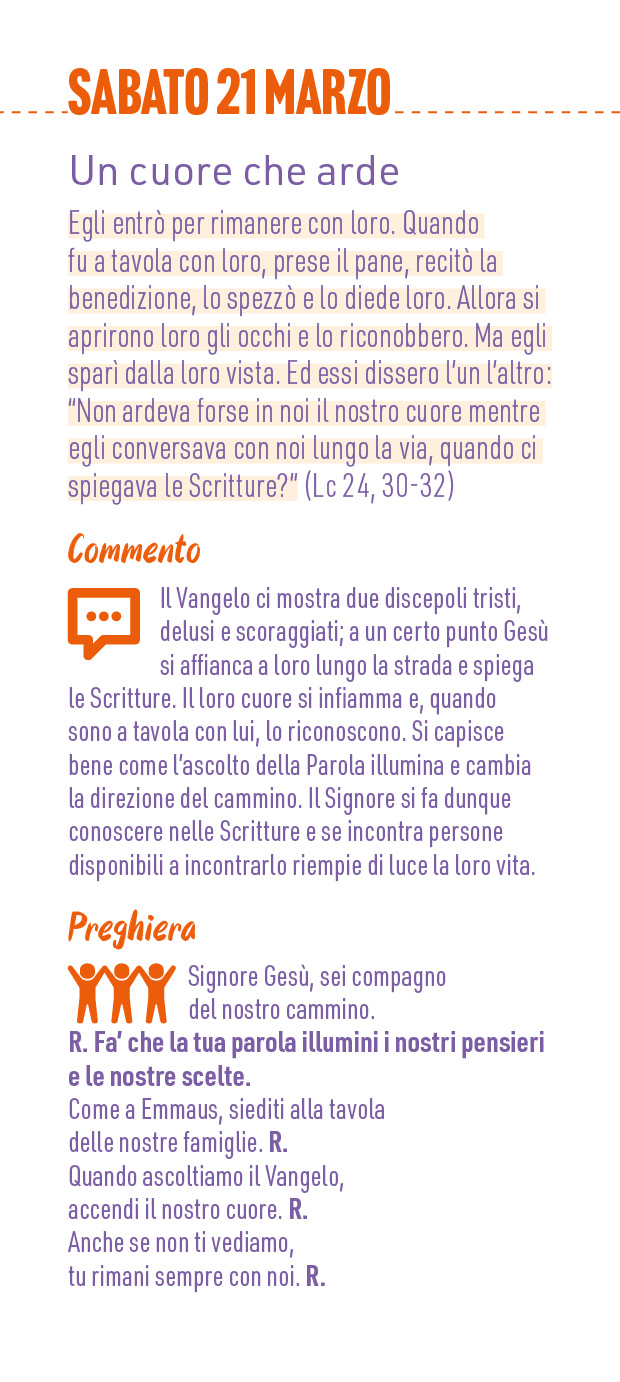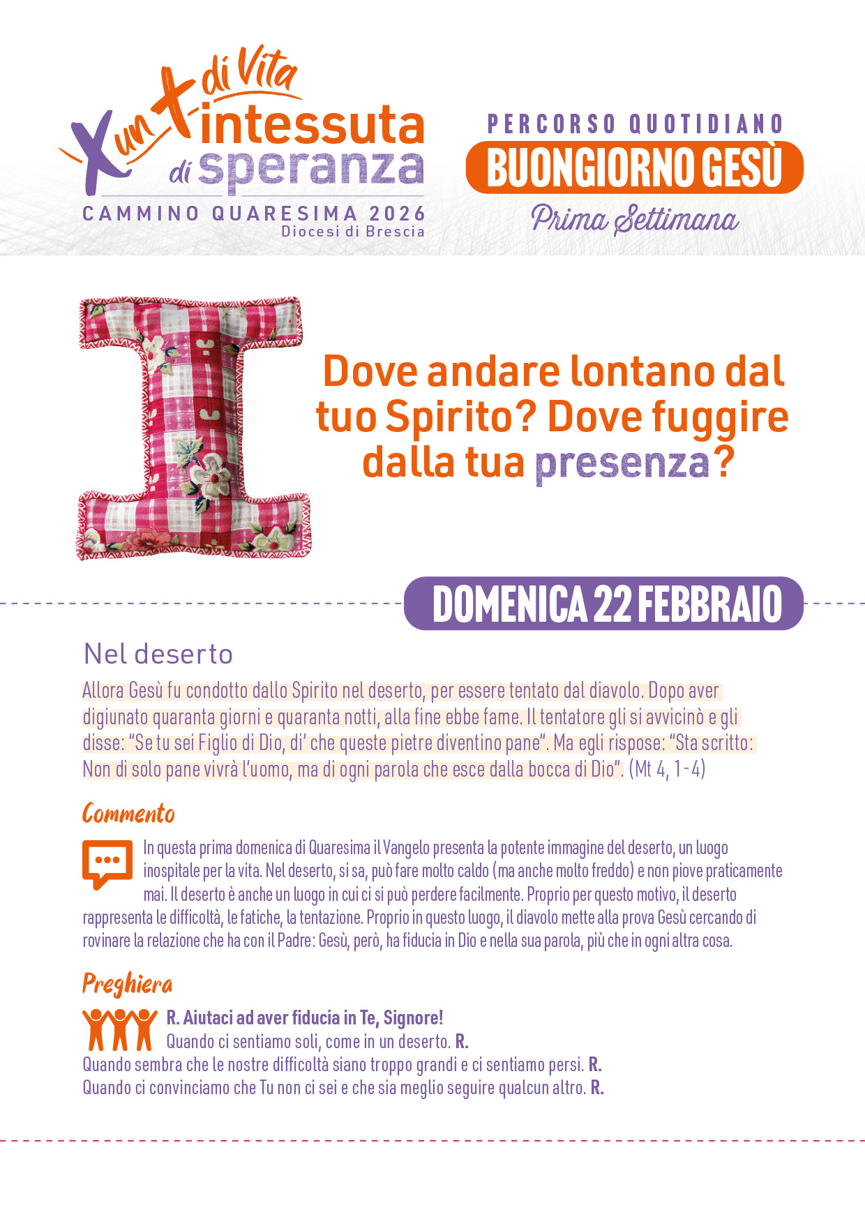 Accanto al tema proposto dal Vangelo della domenica, ogni settimana la meditazione prenderà il via da alcuni brani della parola di Dio che ci aiuteranno a riconoscere nella nostra vita il filo della speranza che da sempre la abita.