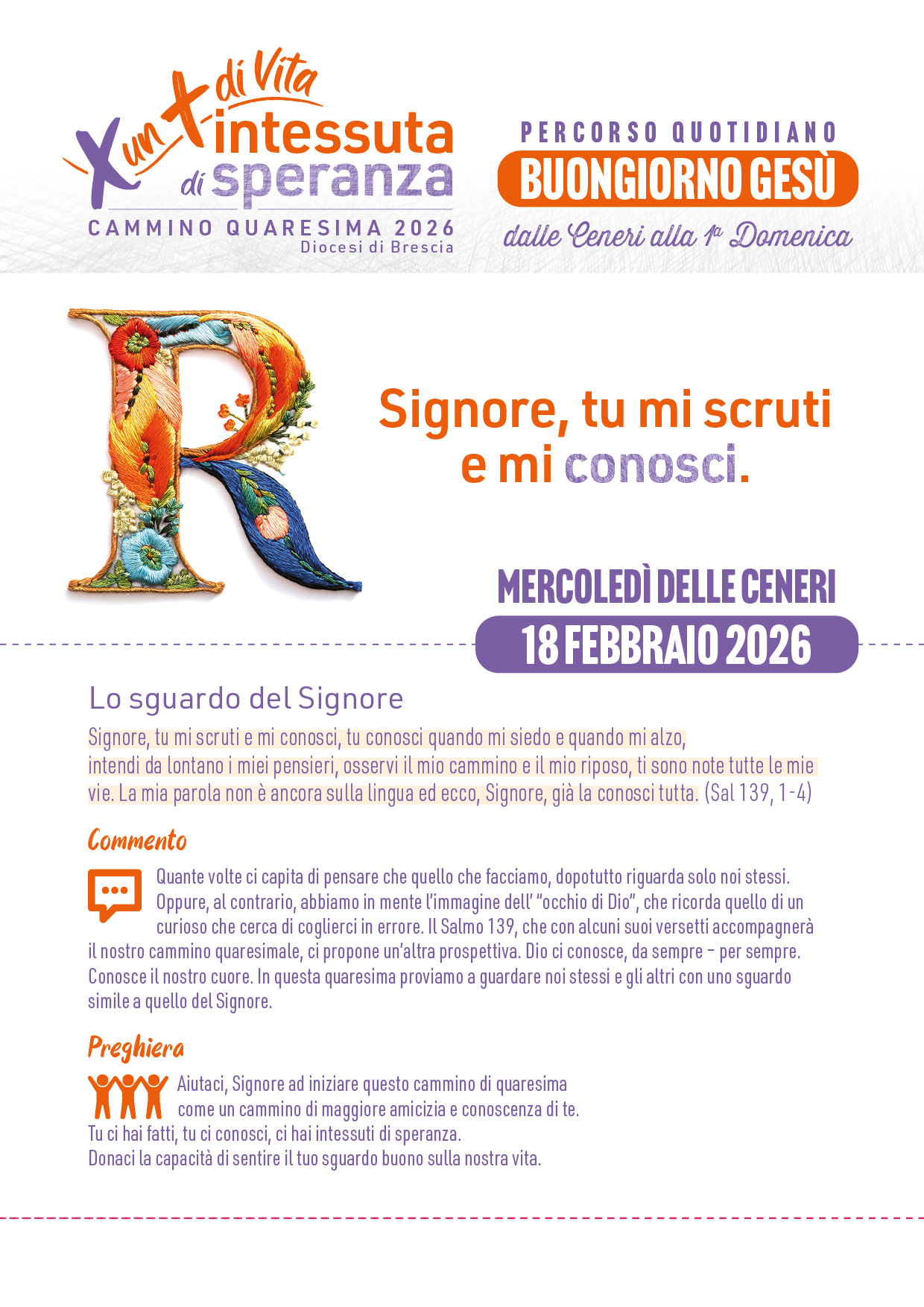 Il cammino di quaresima proposto per il 2026 invita ognuno di noi a rinnovare lo sguardo dentro e fuori di sé.