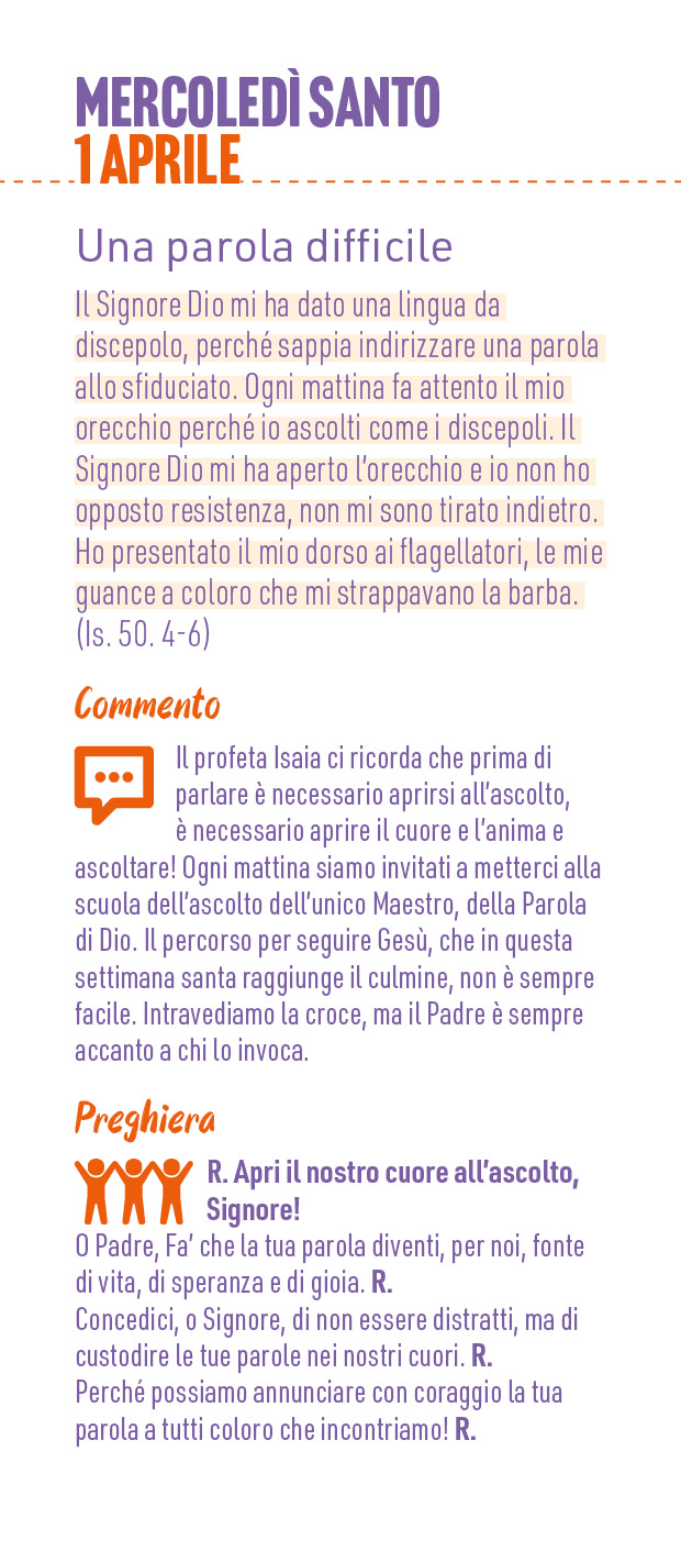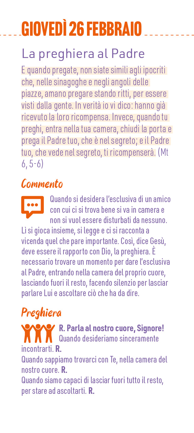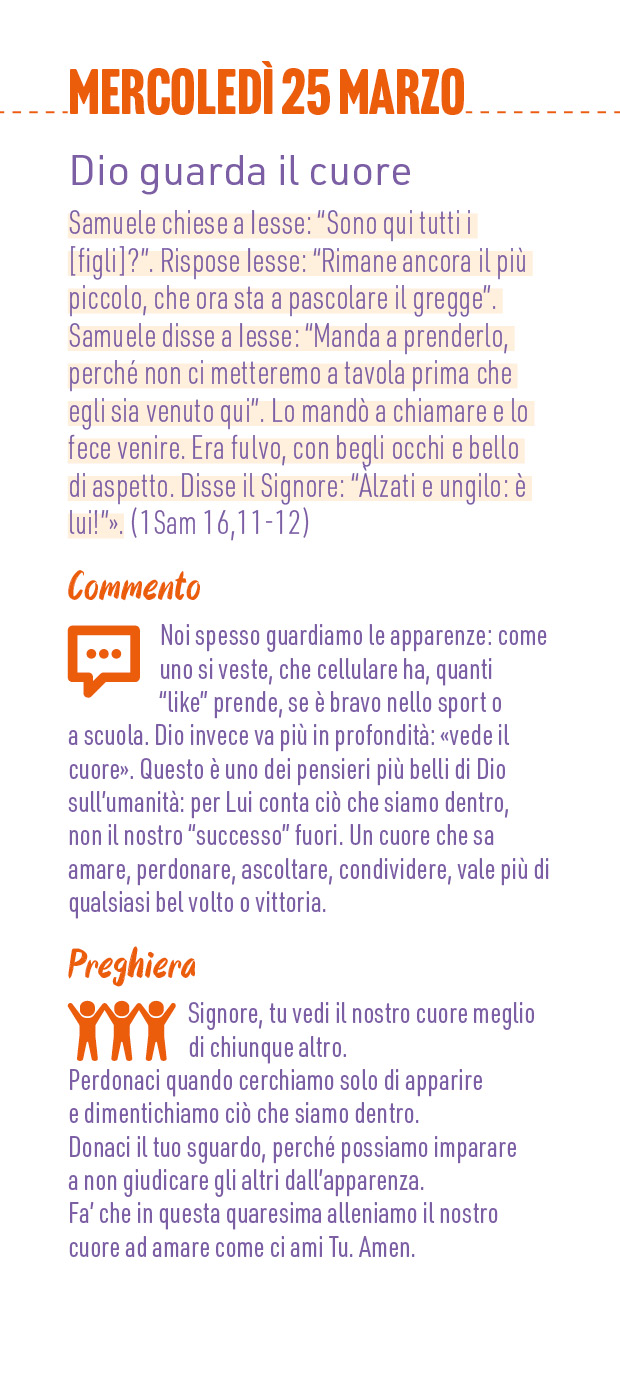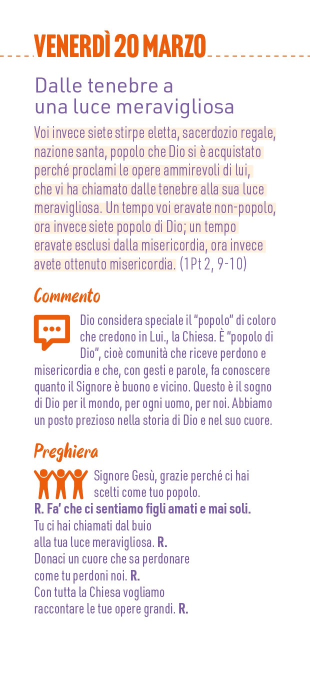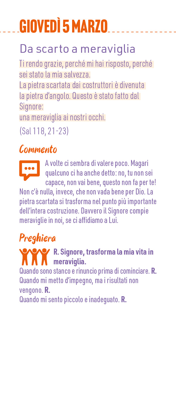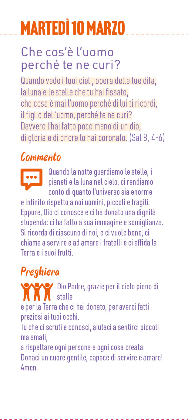 La proposta di preghiera per i bambini e i ragazzi, sarà scandita da alcuni versetti di questo Salmo che, settimana per settimana, ci aiuteranno ad entrare sempre più profondità nel cammino di quaresima dell’anno A.