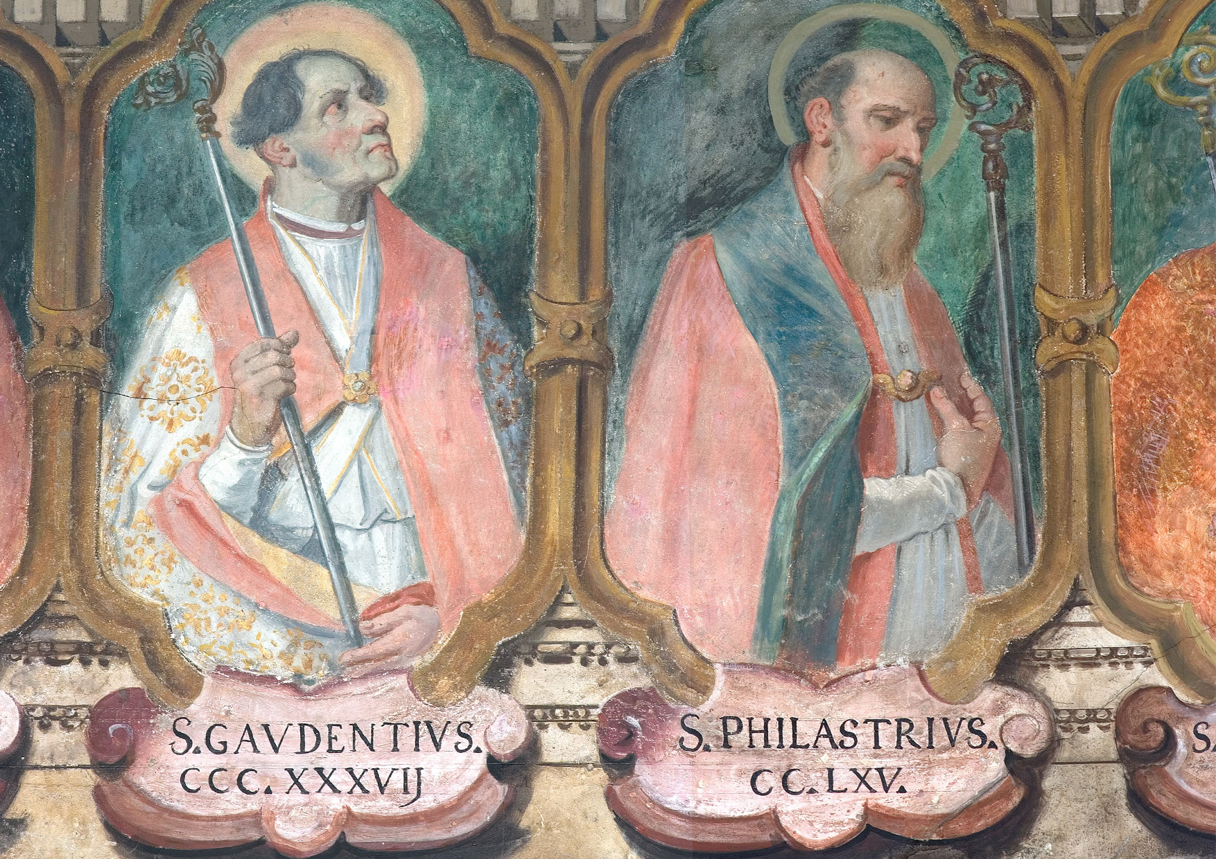 Di origine non bresciana, san Filastrio era considerato fondatore della Chiesa bresciana già in un panegirico del suo successore san Gaudenzio. Ancora presbitero, san Filastrio era stato chiamato ad assistere i cattolici milanesi durante l’episcopato ariano di Aussenzio. Trasferitosi a Roma, compose un trattato contro le eresie; quindi, prima del 381, divenne vescovo di Brescia e morì dopo il 387. Settimo vescovo di Brescia e successore immediato di san Filastrio, di cui si proclamava filius e di cui era forse stato discepolo, san Gaudenzio venne eletto vescovo mentre si trovava in Oriente e venne consacrato da sant’Ambrogio. Nel 406 san Gaudenzio è inviato in Oriente per tentare, inutilmente, di evitare la seconda condanna di san Giovanni Crisostomo. Resse la diocesi bresciana per almeno quattordici anni, dato che ricordava di aver commemorato quattordici volte il predecessore. Autore di un Corpus di discorsi, per le sue relazioni interecclesiali e per la notorietà dei suoi scritti san Gaudenzio rivestì il ruolo di personalità eminente nella Chiesa del tempo.