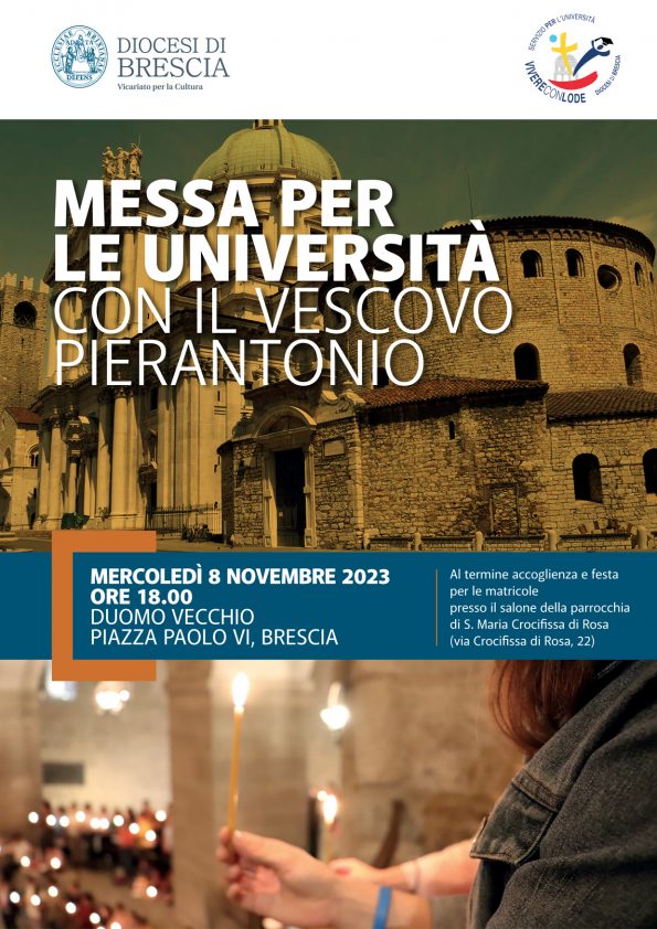 Il Servizio per l’Università esprime l’attenzione e vicinanza della Chiesa bresciana per il mondo universitario, in dialogo con le istituzioni, con gli enti, le fondazioni e le associazioni operanti nel sistema: l’Università degli Studi, l’Università Cattolica del Sacro Cuore, Accademia di Belle Arti Santa Giulia, Libera Accademia Belle Arti, Conservatorio Luca Marenzio, Istituto teologico Paolo VI, Istituto Superiore di Scienze Religiose.