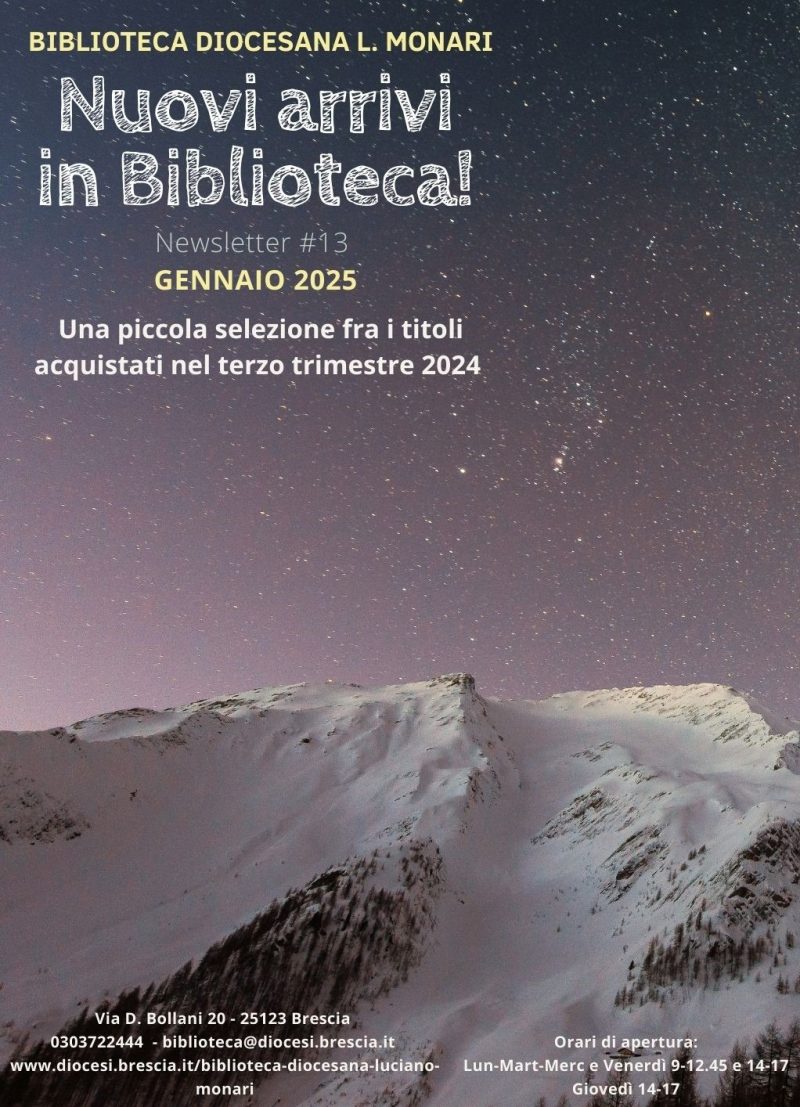 La biblioteca invia ai suoi lettori una newsletter, a cadenza trimestrale, che propone 57 titoli – con abstract – scelti fra le nuove acquisizioni. Sono presenti ogni volta precise sezioni dedicate alle opere di saggistica, alla narrativa, ai libri per bambini e ragazzi e ai film in DVD.