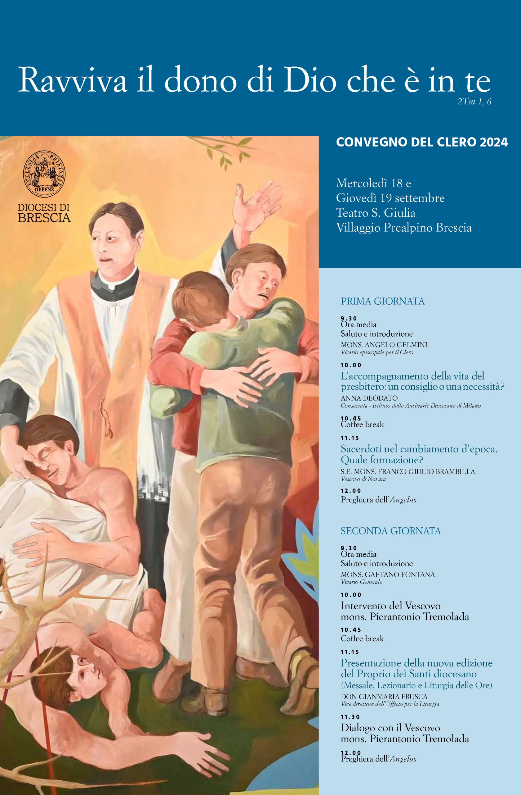 Mercoledì 18 e giovedì 19 settembre 2024 al teatro S. Giulia del Villaggio Prealpino si terrà il Convegno del Clero sul tema “Ravviva il dono di Dio che è in te (2Tm 1, 6)”.