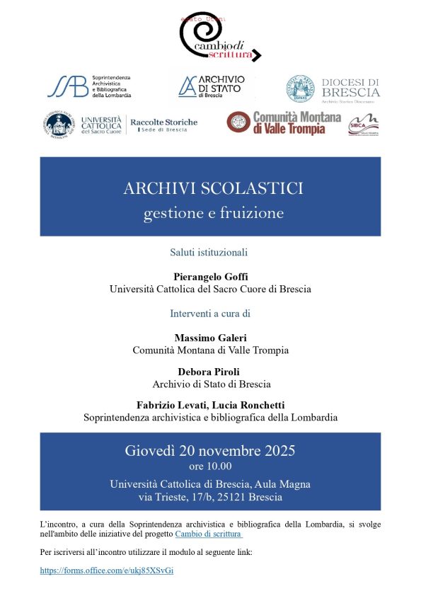 archivio.segreteria@diocesi.brescia.it oppure archiviostorico@diocesi.brescia.it (tel. 030.3722.312 e 030 3722.314).