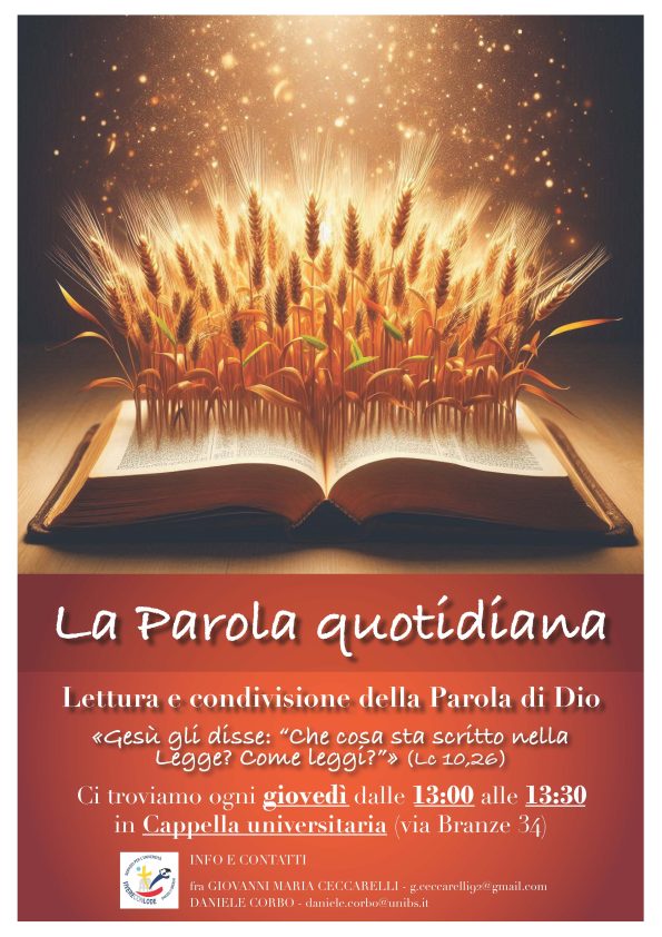 Il responsabile per l’Università celebra la santa messa tutti i giorni feriali, dal lunedì al venerdì, alle ore 8.05 presso la Cappella universitaria di via Branze 34 (nel campus di Ingegneria, adiacente al bar e alla mensa).
