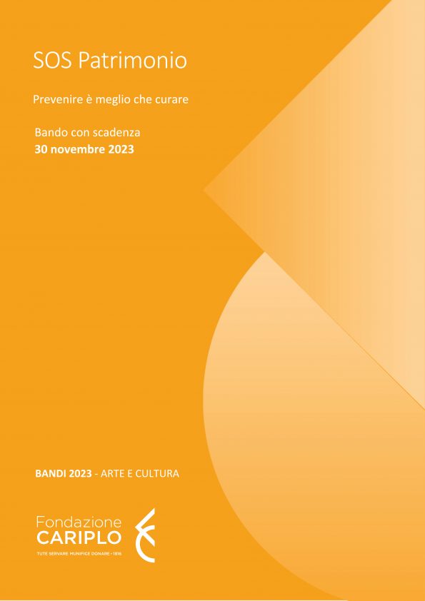 FONDAZIONE CARIPLO – BANDO “SOS PATRIMONIO” (scadenza 30 Novembre 2023) Il bando ha l’obiettivo di sostenere interventi di… Leggi di più